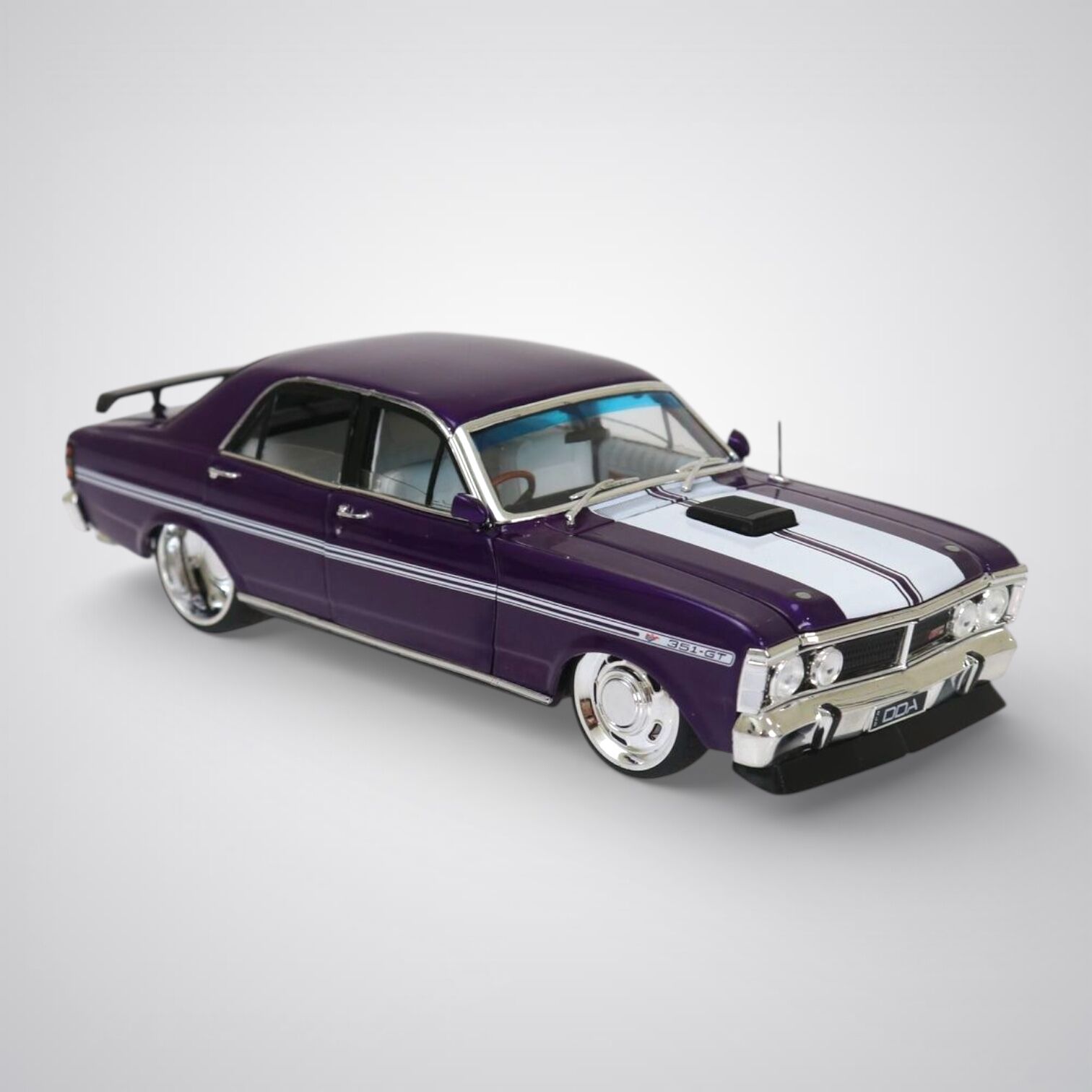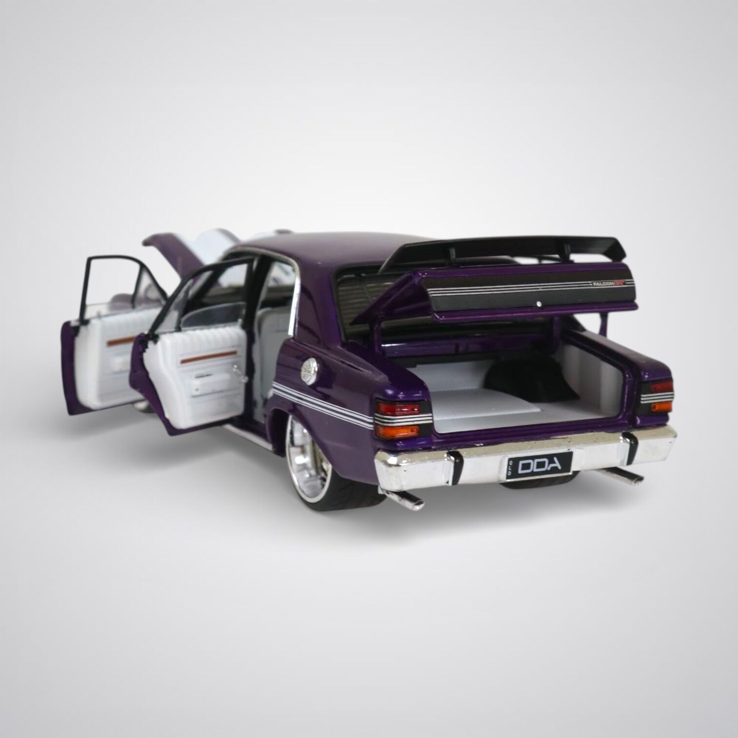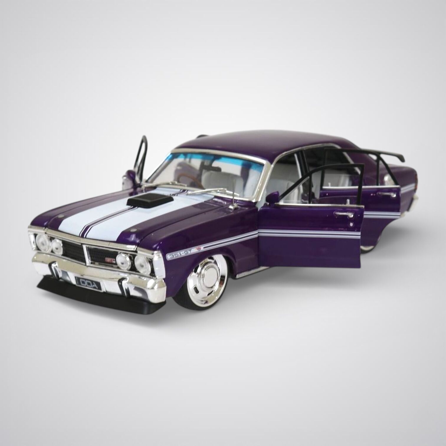 A detailed 1:24 scale replica of a Custom Purple Ford XY Falcon GTHO Phase III by DDA Collectibles.