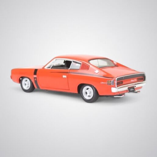 The DDA Collectibles Charger Sfragismeno captures the iconic Australian muscle car in a 1:24 scale diecast model. Finished in vibrant orange, this model features functional opening front doors, detailed interior, and authentic body lines that reflect the classic Charger styling.