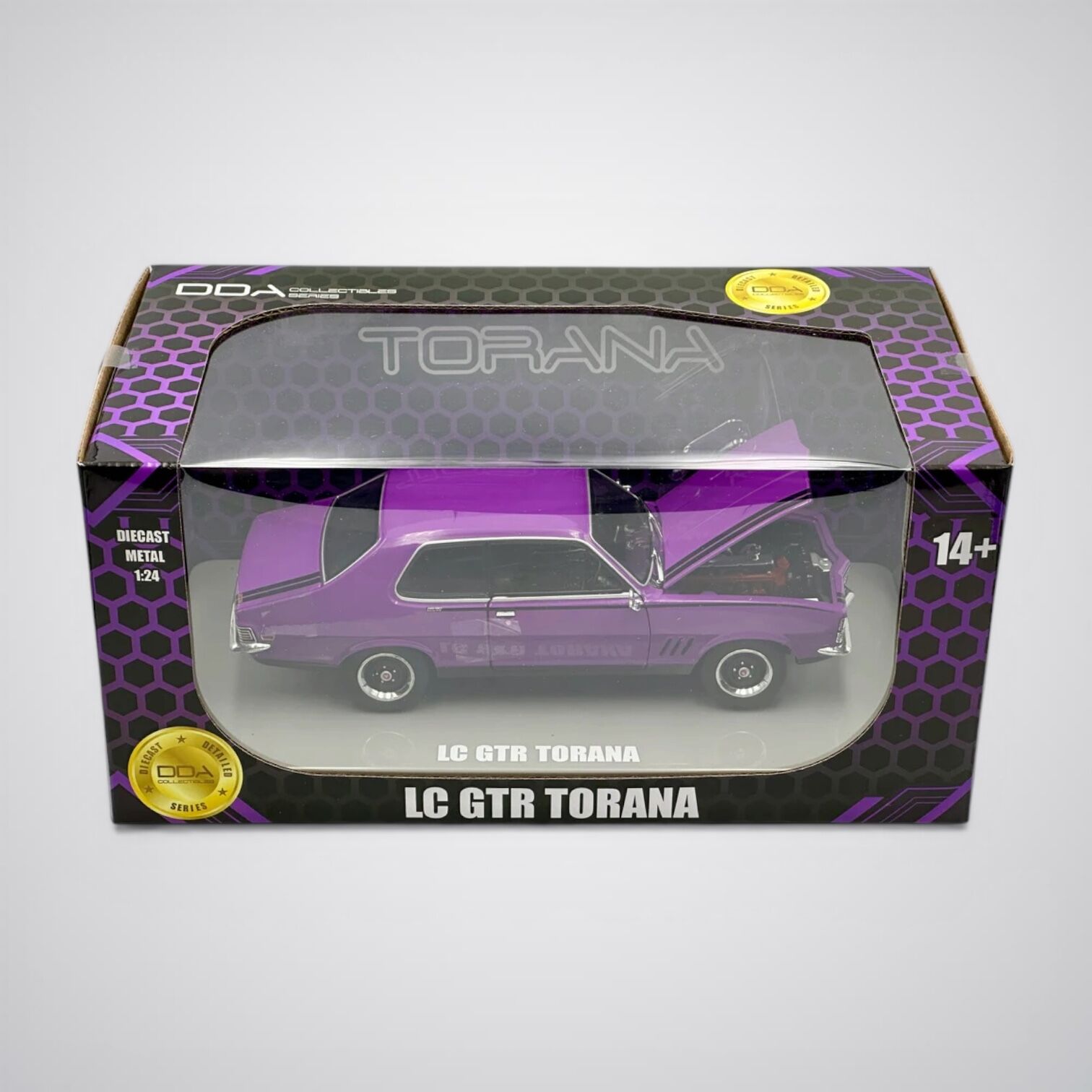 A detailed 1:24 Scale of a Purple Holden LC Torana GTR by DDA Collectibles.